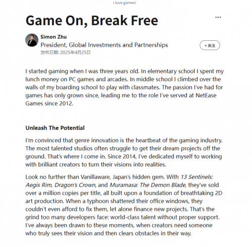他用十二年诠释了“Game On, Break Free”不是一句口号,而是游戏行业最值得坚持的理想主义信仰。