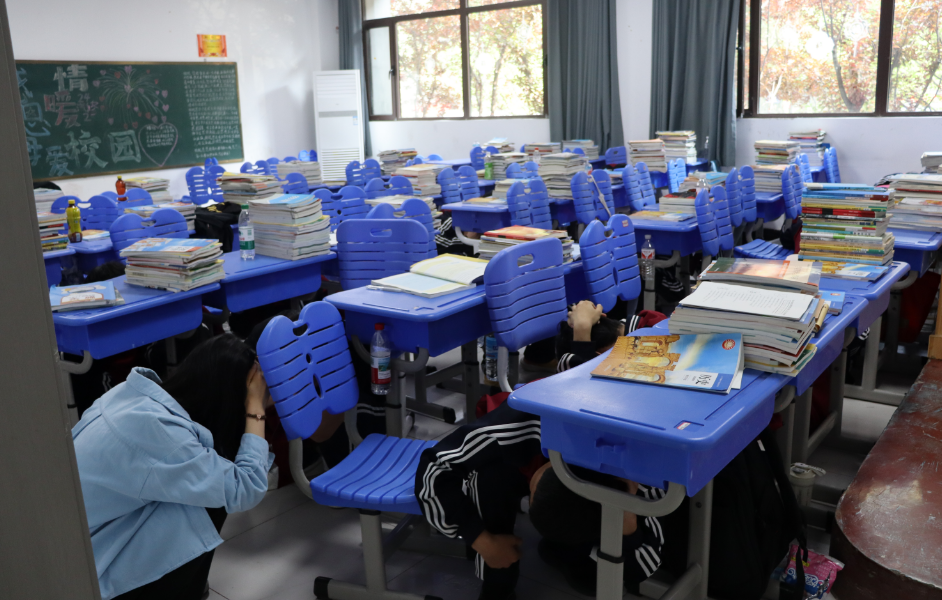随着一阵急促的地震警报声响起,演练正式拉开帷幕。老师们迅速反应,按照预定方案,组织学生们紧急避险。学生们在老师的指挥下,迅速躲到桌子底下、墙角等安全位置,用书本、书包等物品保护头部,尽量降低身体重心,减少受伤风险。待主震过后,疏散指令下达,老师们立即组织学生有序撤离教室。同学们用手护住头部,沿着预定的疏散路线,快速、安静、有序地向操场等安全区域疏散。在疏散过程中,各楼层、楼梯口均有老师和志愿者负责引导,确保疏散过程安全顺畅,避免发生拥挤、踩踏等事故。