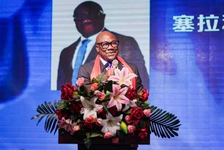 塞拉利昂驻华副大使罗格先生用地道的中文发表了精彩讲话,他说喜欢中国,喜欢中国朋友,喜欢中国文化,也喜欢中国美酒,他要把阮顺堂酒带到他的国家。