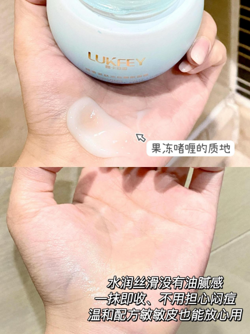 质地是丝滑的果冻啫喱状,推开后像融化的咖喱,轻轻按摩10秒就被肌肤“吃进去”,完全不黏枕头。刚涂完能感受到肌肤瞬间被滋润,第二天早上洗脸时,触感是柔软弹嫩的,不像普通面膜那样只剩表面水润,而是由内而外的饱满。