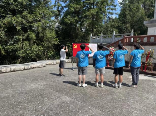 实践队踏上了一段庄重的红色寻根之旅。从记载革命烽火的《红旗》报社旧址,到1932年苏区“心脏”湘鄂赣省委旧址;从1933年反围剿指挥核心湘鄂赣省军区旧址,到“人民政权摇篮”湘鄂赣省苏维埃政府旧址,队员于一砖一瓦间感知历史温度。攀上高峰,湘鄂赣边区革命烈士纪念塔巍然矗立,实践队在此庄严宣誓,誓言铿锵。漫步于红旗广场的五角星地砖上,驻足万载县纪念馆,凝神注视那枚珍贵的苏维埃执行委员会公章原件;循着红军的足迹,探访赤兴、白水的探寻赤兴、白水的山川胜境,在每一步的跋涉之中,信仰的力量悄然润泽心田。