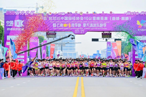 7月27日,2025润泰®翡翠城中国田径协会10公里精英赛(曲靖·麒麟)暨云南曲靖四季跑·夏天清凉乐跑季在曲靖市麒麟区鸣枪开跑,跑者们用脚步丈量“爨乡福地”的活力肌理,一场融合速度激情与人文风情的奔跑盛宴就此启幕。