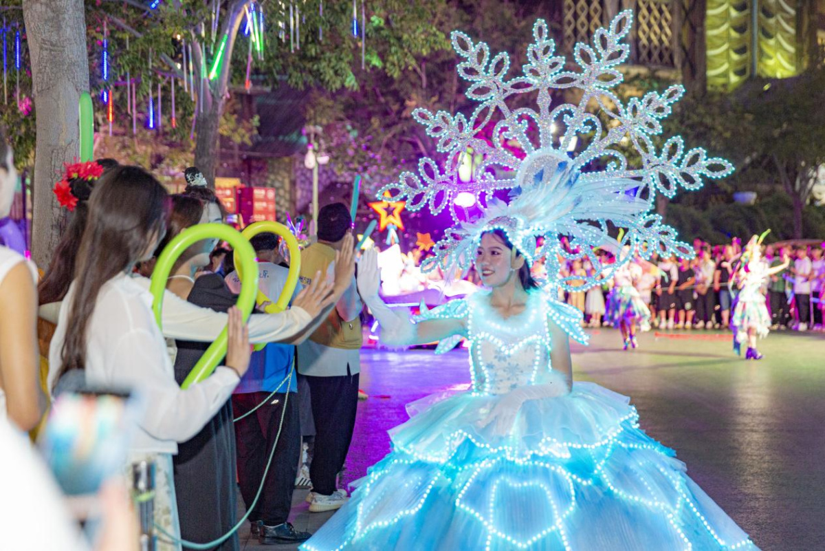 与此同时,郑州方特欢乐世界精心策划了“盛世狂欢节”主题活动。国庆假期,园区全新打造“巨幅国旗”主题造景,以炽热深情献礼祖国华诞,营造出浓厚的节日氛围,让游客在沉浸式拍照打卡中尽享游园之乐。此外,全新升级的“盛世欢歌大巡游”“盛世狂欢趴”和“祝福祖国气球放飞”等精彩互动及演出,也将为游园之旅增添更多惊喜与乐趣。