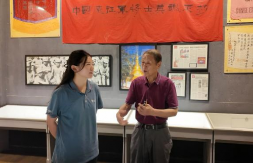 实践团在博物馆实践期间,专访了抗战名将戴安澜之子戴澄东老先生。年逾八旬的戴老精神矍铄,在实践团成员陪同下参观馆内展品,详细讲述其父作为中缅远征军将领的抗战经历。在戴安澜将军使用过的行军床展品前,戴老驻足凝视,动情介绍这件文物的历史背景,言语间流露着对父辈的崇敬之情。