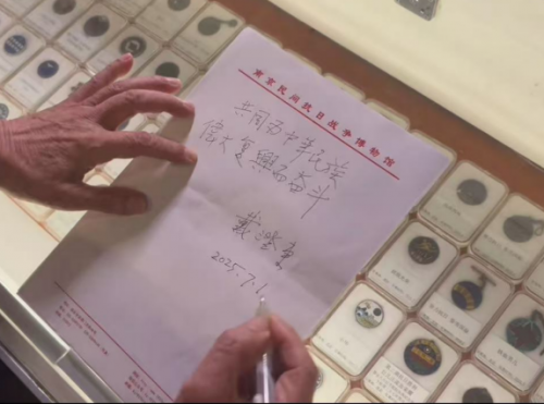 博物馆举行王晓思先生文物捐赠仪式,实践团成员列席见证。王晓思先生向南京民间抗日战争博物馆无偿捐赠其父王云同志(老战士、老党员、文艺工作者)生前珍藏的中国抗日军政大学第五期毕业证、三级独立自由勋章及证书、太行山时期生活照片等革命文物。捐赠仪式上,王晓思先生介绍了王云同志历经抗日战争、解放战争、抗美援朝战争的革命历程及其战后在文艺战线的贡献。实践团成员通过接触历史文物,深刻感悟先辈精神,汲取奋进力量。