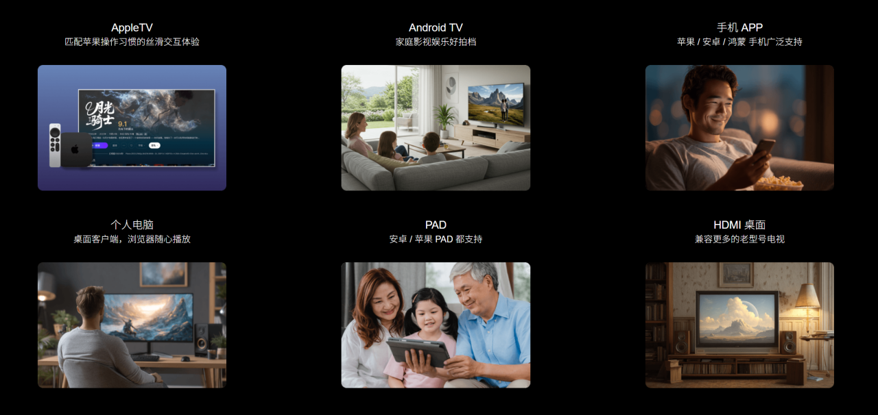 在多设备时代,用户的观影场景往往在手机、电视、电脑、平板间切换。极影视支持全平台适配——覆盖苹果、安卓手机/Pad,Windows/Mac电脑,苹果电视、Android电视,甚至电脑与手机浏览器,真正实现有屏就能播。