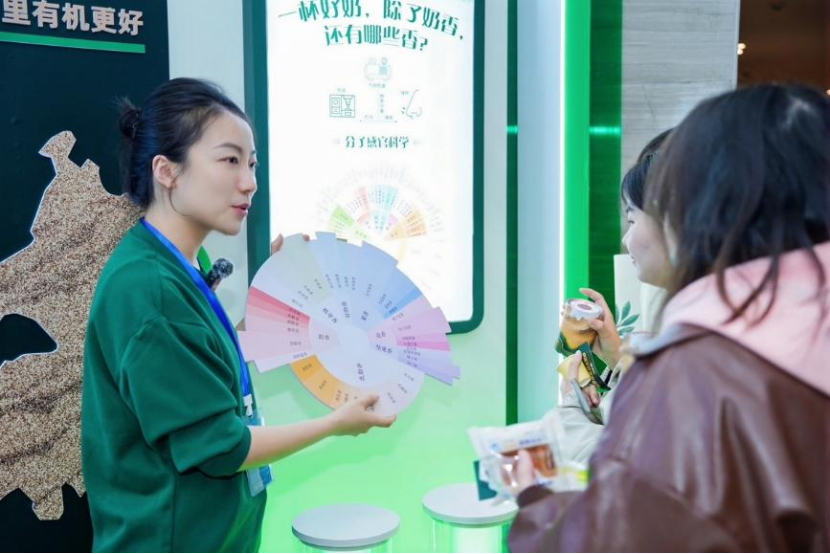 在“沙漠有机寻味图鉴”区域,闻香播放器成为亮点。除了传统的奶香,体验者还能闻到植草香、果香、花香等不同层次的香气。通过识别香气差异,人们可以更深入地理解乳品风味的来源和丰富度。
