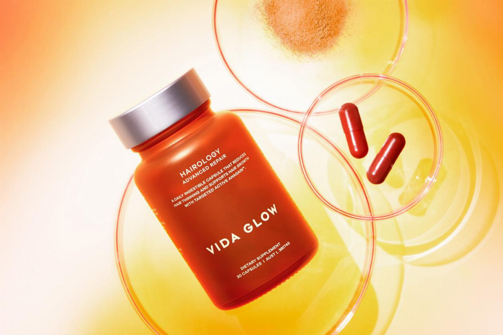 Vida Glow从瑞士有机豌豆苗中萃取了纯植物活性成分AnaGain™。该成分能够刺激毛发生殖细胞增殖,启动新生毛发的生长期并且延长已有毛发的生长期。同时,AnaGain™还会刺激Noggin头蛋白的基因表达,抑制休止期,减少头发脱落。