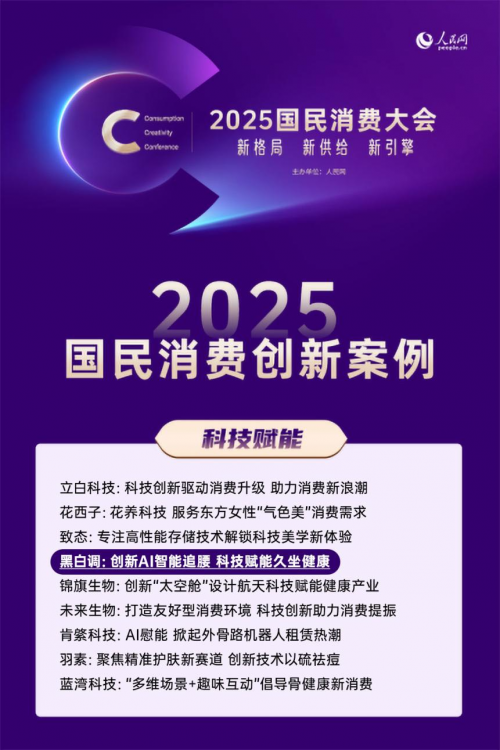 2025年11月29日,由人民网主办的“2025国民消费大会”在北京隆重举行。大会以“新格局、新供给、新引擎”为主题,聚焦消费新动能与产业新变革,揭晓了2025年度国民消费创新案例,其中,黑白调人体工学椅入选“科技赋能”优秀案例,创新AI智能追腰科技赋能久坐健康。