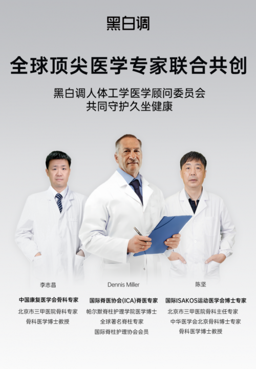 据了解,黑白调始终以“健康”为产品原点,直面“久坐三痛”——腰酸、颈痛、肩痛,将国际公认的“麦肯基疗法”与“帕斯卡定律”融入产品设计;同时,通过与国际脊医协会(ICA)脊医专家Dennis Miller、中国康复医学会骨科专家李志昌、国际ISAKOS运动医学会博士专家陈坚等全球顶尖医学专家开展合作,搭建“医研共创”体系。