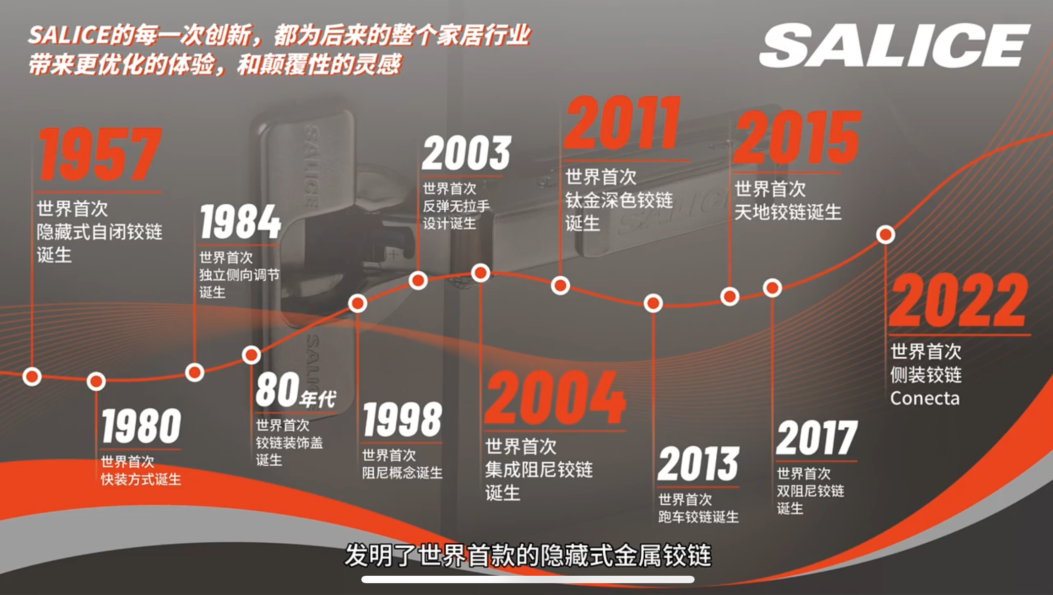 雷怀成总经理表示萨郦奇之所以被誉为现代铰链之父,是源于意大利萨郦奇成立于1926年,1957年世界上第一支隐藏式自闭铰链诞生,到明年2026年萨郦奇成立一百周年,萨郦奇百年的发展史,也是世界五金行业的一个进化史。