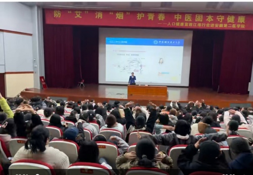 2025年11月26日下午,由“人口健康江淮行”活动组委会主办、安徽第二医学院承办的 “防艾消烟护青春、中医固本守健康” 人口健康宣讲江淮行大型公益讲座,在学校学术报告厅成功举行。知名控烟公益人、逻辑弃烟发明人刘峰老师(弃烟大峰哥)受邀担任主讲,为现场四百余名师生带来了一场颠覆传统认知、启迪健康新生的思想盛宴。