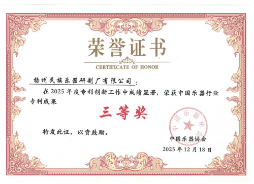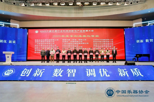 近日,备受行业瞩目的2025中国乐器行业科技创新与产业文化发展大会在肃宁圆满落下帷幕。会上,扬州民族乐器研制厂有限公司(下称“龙凤乐器”)凭借硬核创新实力与优质专利成果,成功斩获“2025年度专利成果三等奖”。这是龙凤乐器在科技创新领域的又一重要突破,更延续了其多年蝉联行业专利奖项的辉煌佳绩。公司总经理田泉先生亲赴现场领奖,以庄重姿态彰显企业对科技创新的高度重视,也印证了龙凤乐器在民族乐器研发领域的领跑地位。