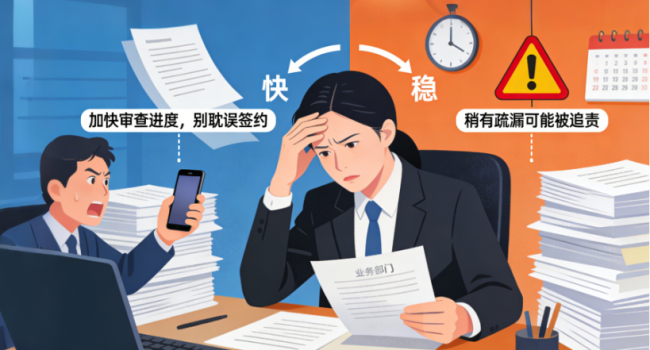 • 企业法务:一边被业务部门催着“加快审查进度,别耽误签约”,一边要守住风险底线,稍有疏漏就可能被追责,陷入“快”与“稳”的两难; • 资深法务:要统筹团队审查质量,还要跟进法条更新、合规新政,面对新人审出的漏洞,反复复核纠错,精力被大量重复劳动消耗; • 新人法务:背熟了法条,却不懂实务中的“隐形陷阱”,审一份合同反复请教前辈,怕出错、怕漏风险,压力大到内耗。