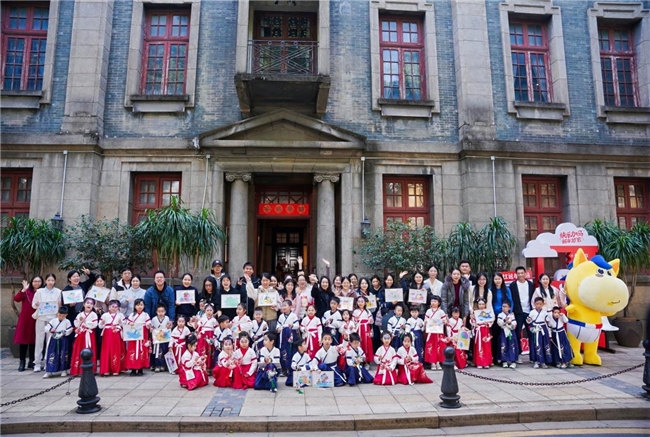 当百年建筑在新年的气息中焕发新生,孩子们身着华美汉服,面绘仙鹤、福字、玉兔等吉祥纹样,裙摆轻扬间天真流露,萌趣盎然!