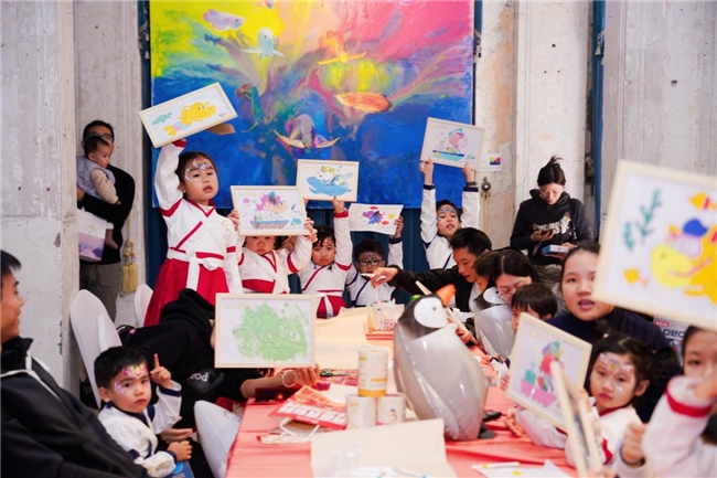 活动现场不仅设有非遗鱼灯、传统货郎车等打卡点,更以一场新年游园会开启新春精彩。在非遗拍照打卡,AI智慧问答、套圈集多福、幸运抽盲盒等趣味环节中,小朋友们边玩边学,在游戏中亲近传统,在体验中感受文化,特别在压轴环节-小马琪琪亲子涂鸦创作中,孩子们俯身案前,专注为小马绘色添彩,在天马行空的创作中汲取百年科学的滋养,也在分享中收获“快乐加马”的成长能量。