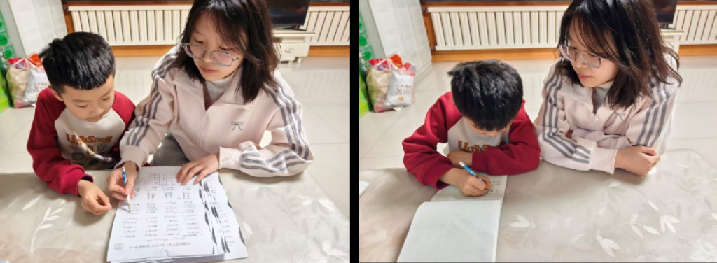 志愿者充分发挥地域优势,采取线下“一对一”辅导形式,根据儿童学业水平差异针对性地开展作业辅导。志愿者从加减运算拓展至乘除运算,结合生活案例讲解实际应用,让学生真切感受数学的实用价值;语文学科则注重夯实基础,规范孩子们的书写,并帮助孩子理解背诵古诗,激发对传统文化的兴趣。对于学习中遇到的难题,志愿者逐一细致解答,帮助他们在巩固知识的同时,逐步建立起孩子们学习的自信心;线上则依托“一对一”云课堂模式,打破地域限制,志愿者提前掌握服务对象学习情况,量身定制专属辅导计划。志愿者针对学生写作中的问题,开设趣味作文指导课程,系统开展写作能力帮扶。课程以“观察力大挑战”为切入点,引导学生运用多感官感知生活,从主题确定、语言组织到细节补充、中心提炼,进行全环节细致点拨。经过系统辅导,学生逐步突破写作瓶颈,写作思路愈发清晰。