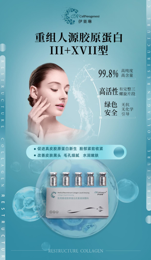并且,为了让皮肤抗衰的效果更好,美国伊赛琳3+17型胶原蛋白采用美国知名CellNeogenesi 实验室专利技术,实现“序列同源+生产同源”:生物相容性佳,过敏率较低,即便是敏感肌人群也可以进行使用;生产原料无抗生素、化学诱导的绿色表达体系,内毒素含量<0.1EU/mL,在安全性上具有较高的保障。