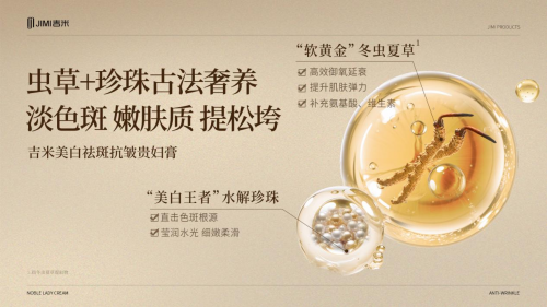 吉米美白祛斑抗皱贵妇膏,结合虫草与珍珠的传统妆养智慧,并融合现代美白抗皱科技。能够即时提亮肤色,遮盖瑕疵,同时长期使用可有效淡化色斑,均匀肤色。并且具有6H超长持妆力,轻松打造清透伪素颜。1瓶内外兼修,让妈妈放肆美丽。