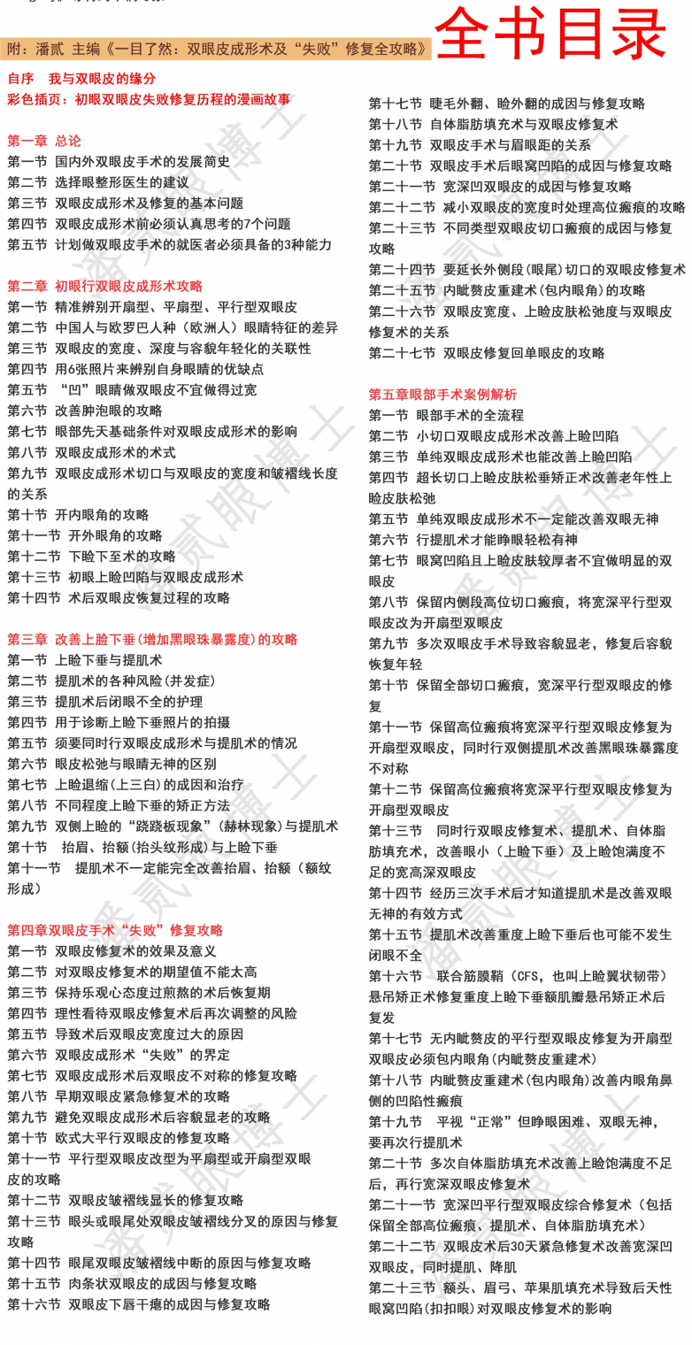 附:潘贰 主编《一目了然:双眼皮成形术及“失败”修复全攻略》 全书目录