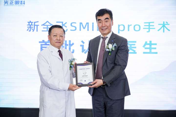 仪式上,蔡司医疗中国区代表向上海新视界中兴眼科医院颁授了一系列极具含金量的认证:新一代机器人全飞秒VISUMAX 800及新微创全飞秒手术SMILE pro“中国首批用户”及“临床合作单位”;蔡司医疗中国区总负责人刘永华为医院廉井财院长颁授“新全飞SMILE pro手术首批认证医生”证书。此次系列认证,不仅标志着医院成为国内屈光手术领域的先行者,更彰显了其在近视手术领域的领先地位。