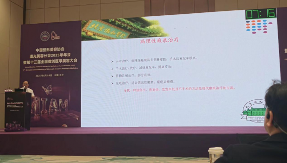 【长沙,2025年6月】在近日举行的中国整形美容协会激光美容分会2025年年会暨第十三届全国微创医学美容大会上,北京协和医院整形外科著名专家刘志飞教授协同京肤疤痕修复等研究团队发布了瘢痕治疗领域的突破性成果,其《探讨应用激光治疗仪联合光纤治疗瘢痕疙瘩的临床效果》的主题报告,分享了瘢痕治疗领域的最新研究成果,引发业界广泛关注。