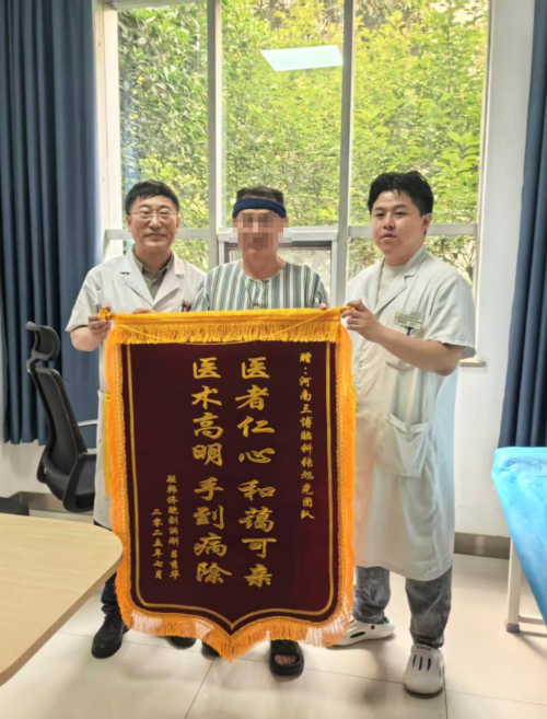 术后,当刘先生从麻醉中苏醒过来,折磨刘先生长达六年的剧痛就完全消失了。他终于能自由地洗脸、刷牙,安心地吃饭、入睡。重获新生的刘先生,将满心感激化作一面鲜艳的锦旗,亲手赠予张旭光团队:“医术高明,手到病除;医者仁心,和蔼可亲”——十六个字,道不尽一位患者的由衷谢意。“这次真是来对了,效果我特别满意!以后有朋友得这病,我一定介绍来找张主任!”刘先生感激地说。