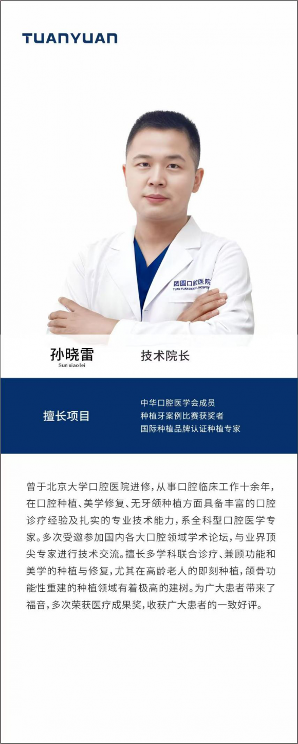 宝鸡大团圆口腔孙晓雷技术院长,用专业守护您的每一次微笑,用实力为您的口腔健康筑牢坚实防线!期待与您相遇,开启健康口腔的焕新之旅!