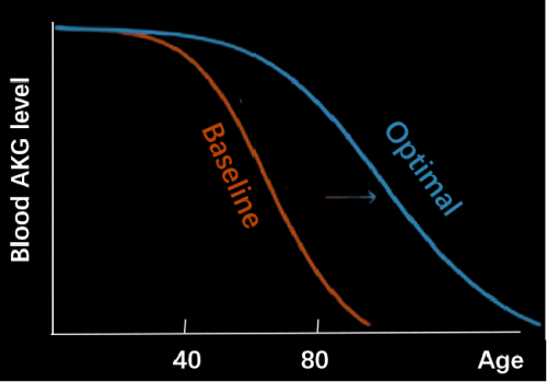 图:随年龄渐长,血液中 AKG 水平会急速下降
