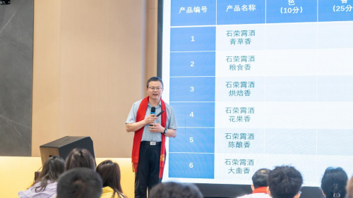 在活动现场,中食院首席品酒师宋涛先生详细介绍了中食院专家团队运用感官品评科学、风味物质图谱分析等核心技术,对石荣霄产品进行精准风味调控与靶向设计,成功开发出青草香、花果香、烘焙香、大曲香、粮食香、陈酿香六款独具辨识度的产品。