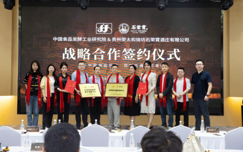 2025年6月26日,中国食品发酵工业研究院(下称“中食院”)与贵州荣太和烧坊石荣霄酒庄有限公司(下称“石荣霄”)战略合作签约仪式在贵州贵阳举行,并成立石荣霄古曲联合研发中心、王家茅酒酒体联合研发中心,为中国酱酒绽放新香。
