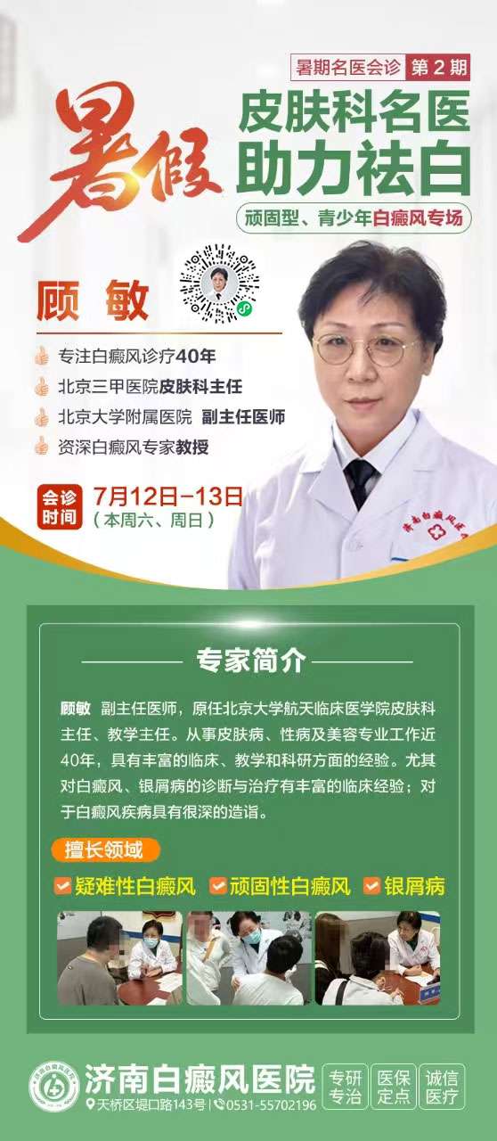 济南白癜风医院始终心系白癜风患者,为让大家能便捷地接触到国内顶级专家的诊疗,会不定期邀请国内白癜风学科带头人来院会诊。本期,由北京大学航天附属医院的顾敏主任领衔坐诊,为华东地区的白癜风患者排忧解难、答疑解惑!