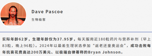 同时,本届“生物极客闭门会议”将把焦点放在抗衰实践的可复制性上,邀请每年只花费3万美元,通过模仿成功人士的经验,将62岁的实际年龄逆转为37.95岁的生理年龄的——抗衰极客Dave Pascoe;生物制剂公司Chara Biologics创始人Joy Kong,她创立的 Chara Health 医疗中心,以干细胞和肽疗法见长,显著改善了慢性病患者的生活质量,在此基础上主导开展了干细胞治疗脑损伤的临床研究。分享最硬核的抗衰老实践策略,向实现“老而不衰“的美好愿景迈出坚实的一步。