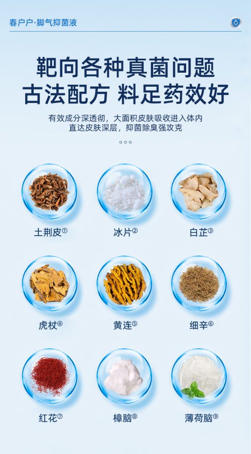 土荆皮专克皮肤癣菌,白芷消肿止痒,虎杖清热解毒,黄连消炎抗菌……7味草本提取物,像给脚丫子敷了层「天然抗菌膜」~