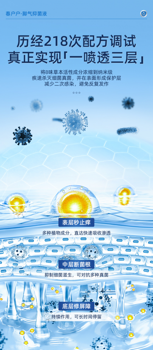 草本的温和+科技的精准,双管齐下,真正实现「一喷透三层」:表层秒止痒→中层断菌根→底层修屏障!