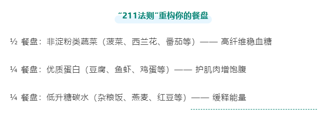 以全食物为基础: 大量摄入非淀粉类蔬菜(绿叶菜、西兰花、番茄、菌菇等)、适量低糖水果(莓果类等)、优质蛋白(豆制品、鱼、禽、蛋)、健康脂肪(坚果、种子、橄榄油、牛油果)。