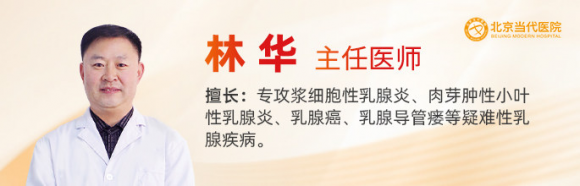 黄汉源教授的徒弟林华主任,深耕乳腺疾病诊疗多年,如今已是北京当代医院特聘院长、黄汉源乳腺专家团带头人。他承袭了团队 “以手术为核心的综合治疗” 理念,尤其擅长浆细胞性乳腺炎、肉芽肿性乳腺炎、乳腺导管瘘等疑难病症的诊治。面对这类易反复发作、对乳房外形影响极大的疾病,林华主任始终坚持 “先控炎、再根治” 的思路 —— 术前通过中药、激素、切开引流等手段精准控制炎症、缩小肿块,再运用团队首创的 “乳腺导管探查术”,逐一清除可见与隐匿的病灶,将复发率牢牢控制在 2% 以内,远低于国际平均水平。对于中后期乳房大面积破溃的患者,他熟练应用 “腺皮瓣转移术”,通过转移血运丰富的组织解决缝合难题,最大程度保留乳房外形,大大降低了乳腺切除率。