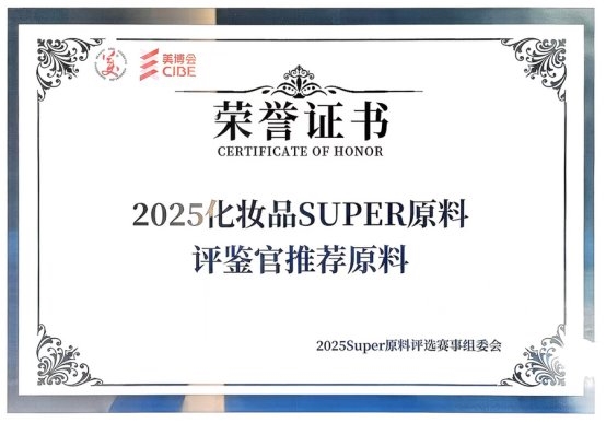 御方汇(广州)生物技术有限公司推出的御方汇祛斑植物原液历经初赛,复赛,决赛,从众多的原料中脱颖而出,荣获由美博会2025 Super原料评选赛事组委会颁发的“2025化妆品SUPER原料评鉴官推荐原料”证书。这是对御方汇在原料领域多年来发展与创新的鼓励和更好的期待。