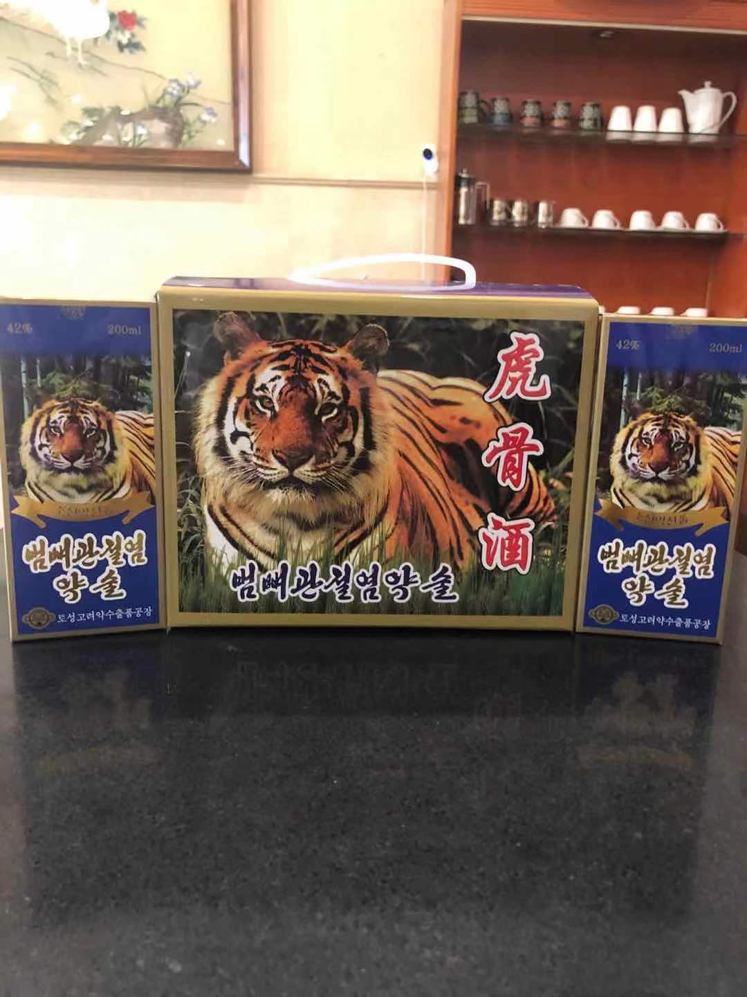 朝鲜虎骨酒:传承古方,虎骨酒首载于孙思邈《备急千金要方》,遵循《本草纲目》等古籍精粹,具有壮筋骨、强腰肾、祛风寒,适用于风湿骨痛、肾虚骨弱等症。朝鲜土城制药厂、朝鲜中央动物园制药厂生产的这款虎骨关节炎药酒在朝鲜半岛的养生文化中一直被视为珍贵的保健饮品。