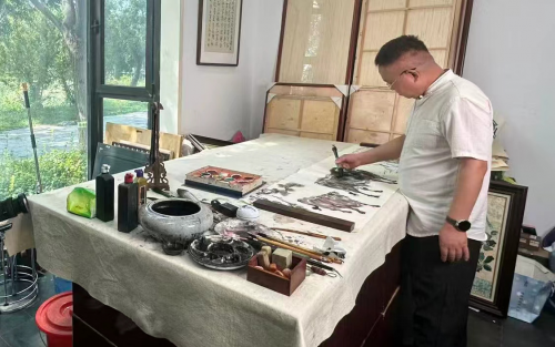 如今,在滨海公安系统工作的李志民并未因身份的转变放下画笔,反而潜心研习古人技法,他将“师古人、师造化、得心源”作为自己的创作理念——“‘师古人’就是临摹先贤作品,在与古人的“对话”中汲取笔墨精髓,领悟“书画同源”的真谛;‘师造化’则是扎根生活,从身边环境与经历中捕捉创作的火花。”他坦言,过往多元的工作经历就是他创作道路上源源不断的灵感来源。