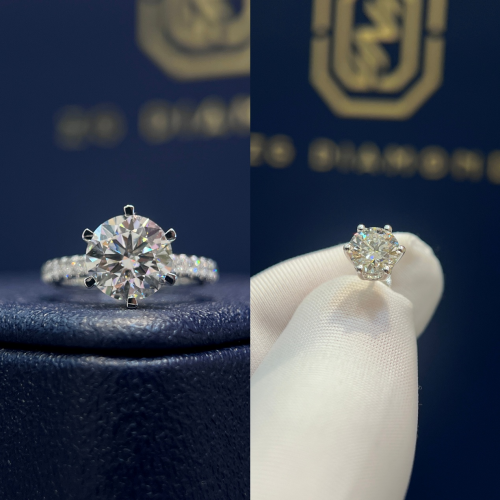 钻石4C标准拉满: VVS级净度(肉眼无瑕)+D级颜色+3EX完美切工(火彩闪耀)+大克拉自由选择(2-50克拉随心定);