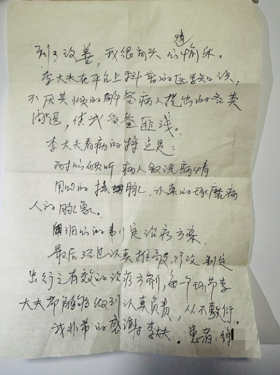 “好久没见这么认真的手写感谢信了。” 李圣耀捧着信时红了眼。在电子通讯泛滥的今天,73 岁老人一笔一划的执着,是对 “医德高尚、医术精进” 最动人的诠释,更是医患间信任与温暖的最佳见证。