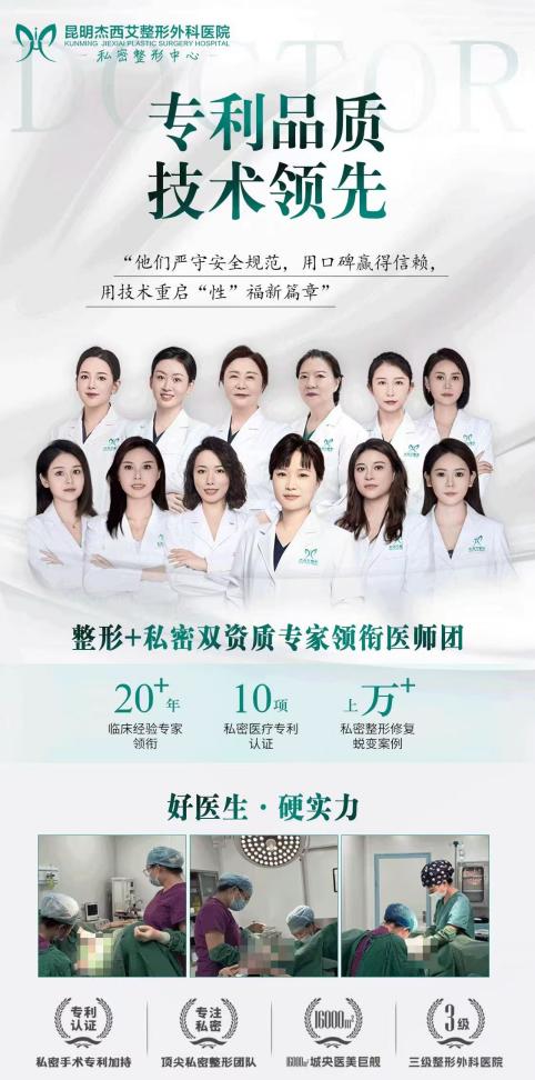昆明杰西艾整形外科私密中心始终以女性私密健康为核心,凭借三级医院的专业资质、翟长飞医生团队的丰富经验与10项专利技术,为每一位女性定制专属的私密修复方案。现在添加微信,即刻预约翟长飞医生团队的免费私密6项健康评估,解锁属于自己的私密健康与愉悦密码。