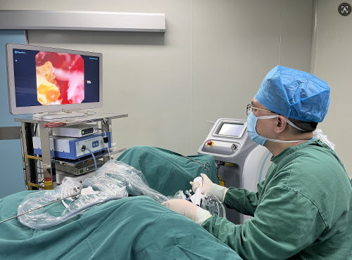 (长沙南湖医院——输尿管软镜钬激光碎石取石手术实景)