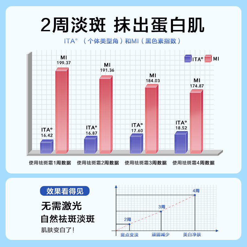 临床数据也显示,持续使用该产品28天,可实现肤色提亮1.5个色阶,色斑颜色与面积均有肉眼可见的改善。