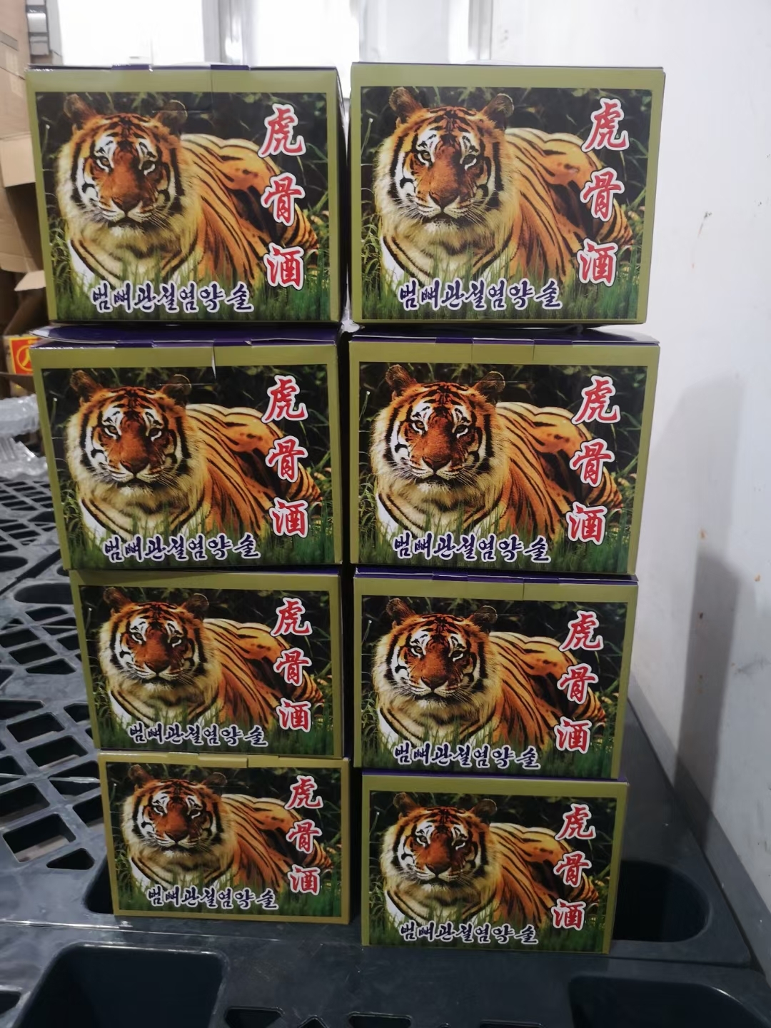 三年泡制的朝鲜虎骨酒200元一瓶,一小箱8瓶。