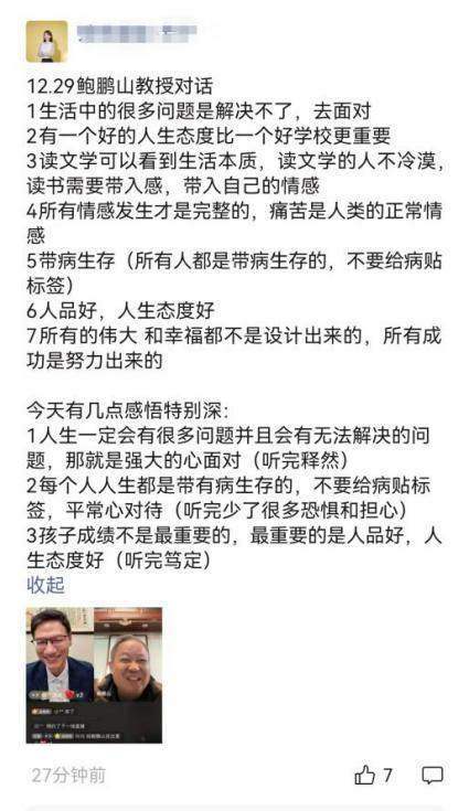 直播中,鲍鹏山教授以 “文学是人类精神的避难所” 为核心观点,深入浅出地阐释了文学的独特价值:文学通过构建想象中的生活,让读者体验多元人生、拓展视野心性,更能唤醒道德痛苦、滋养同情心与正义感。面对人生苦难,他提出 “诸多问题无法解决,唯有提升自身高度坦然面对” 的智慧,强调痛苦、迷茫等情感的正当性,反对随意给孩子贴心理标签,主张以陪伴与关注替代强行干预,而心理上的某些 “问题” 反而可能转化为成长的动力。在教育话题上,鲍教授分享自己的观点 “幸福没有必要条件,德行与人生态度比成绩更重要”,呼吁家长聚焦孩子的品格培养与责任感塑造,避免强迫学习非必要的技能与过度补课。