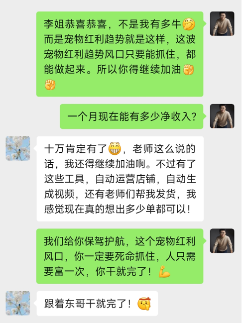 这些真实案例背后,是项目“一对一陪跑+千万级导师+亿元级供应链” 的三重赋能,结合全网200万+粉丝的流量基础与东哥15年的行业导师资源,精准适配抖音、小红书、视频号三大平台特性,助力学员高效变现。