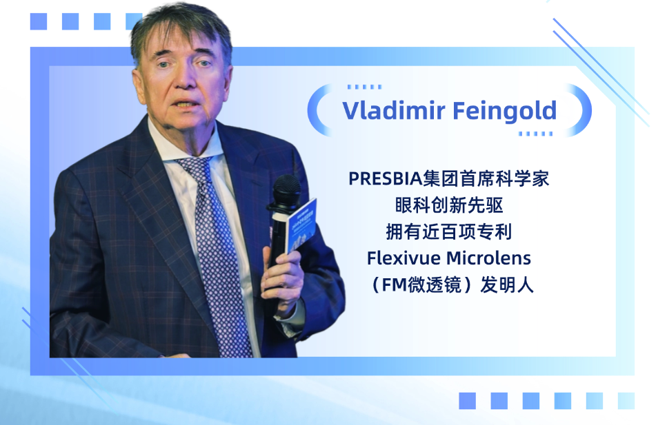 作为Presbia集团首席科学家,VladimirFeingold博士将在大会期间与观众共同穿越技术发展的历史长廊,带来两场重要演讲。在大会开幕式上,他将发表《IntracornealMicrolensforPresbyopia:Innovation,Development,andClinicalOutcomes》主旨演讲,系统阐述其如何从创新理念出发完成PresbiaFlexivueMicrolens(FM微透镜)的研发,并分享FM微透镜国际面世十余年来在老视矫正领域获得的临床认可。