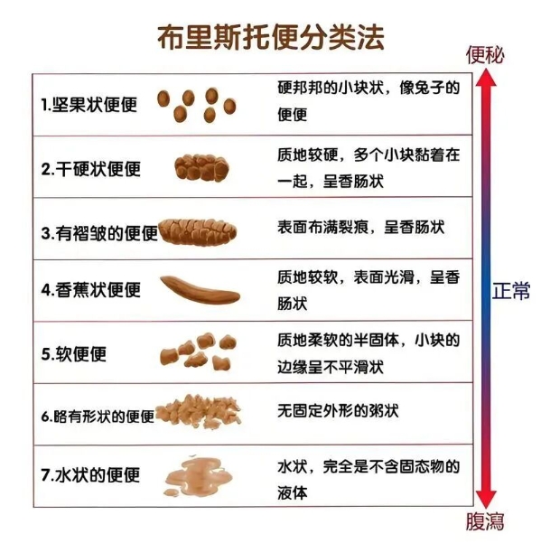 国际通用的布里斯托便分类法,将便便形状分为7种类型。
